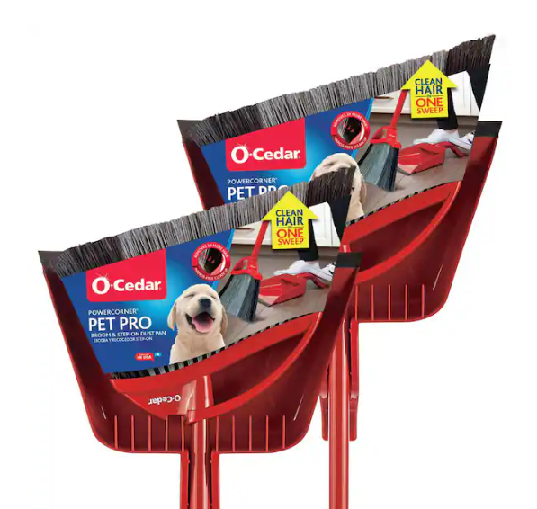 Power Corner Pet Pro Angle Broom with Step On Dust Pan (2-Pack)